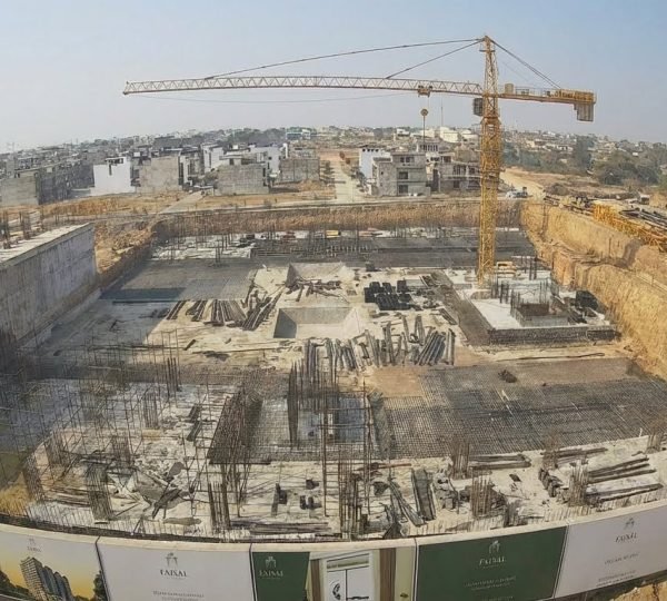 Construction of Faisal Heights Towers is underway at a rapid pace. Ground leveling is finished. The steel lying and raft foundation is progressing swiftly. To keep clients updated on Faisal Heights construction, the Faisal Town Group installed CCTV Cameras on site. Visit the Faisal Heights official website to stay up to date.